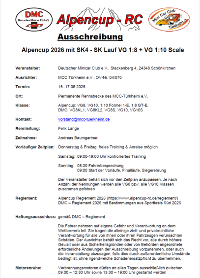Der 5.Alpencup und Dolomitenpokal wir am 26./27.09.2026 vom AMC-Nußdorf/Debant ausgetragen
